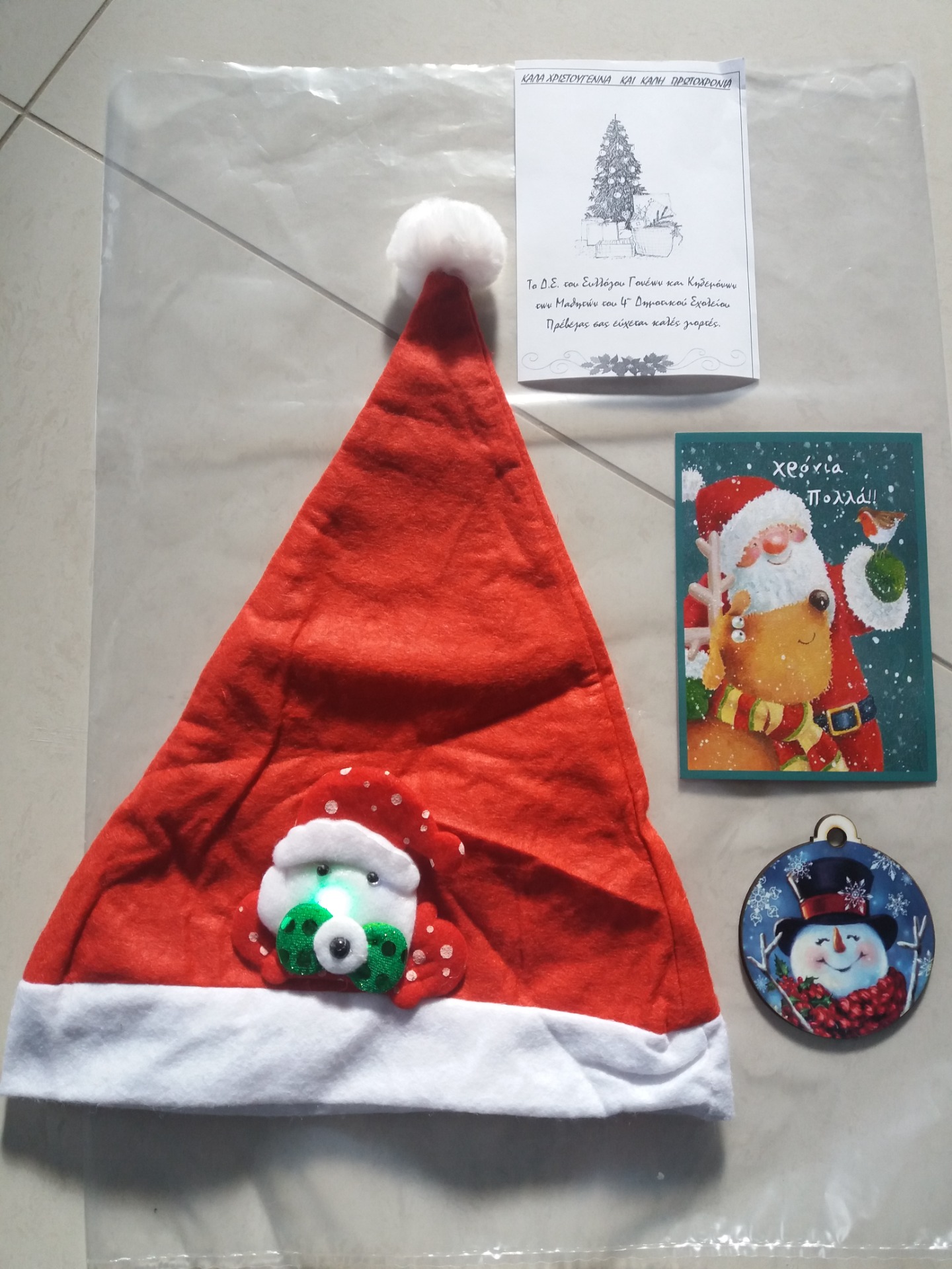 Η αυλή του σχολείου μας γέμισε από χαρούμενα και γελαστά προσωπάκια τα οποία φορούσανε τα σκουφάκια του Άγιου Βασίλη μεταδίδοντας τα χαμόγελα και τη χαρά σε όλους.