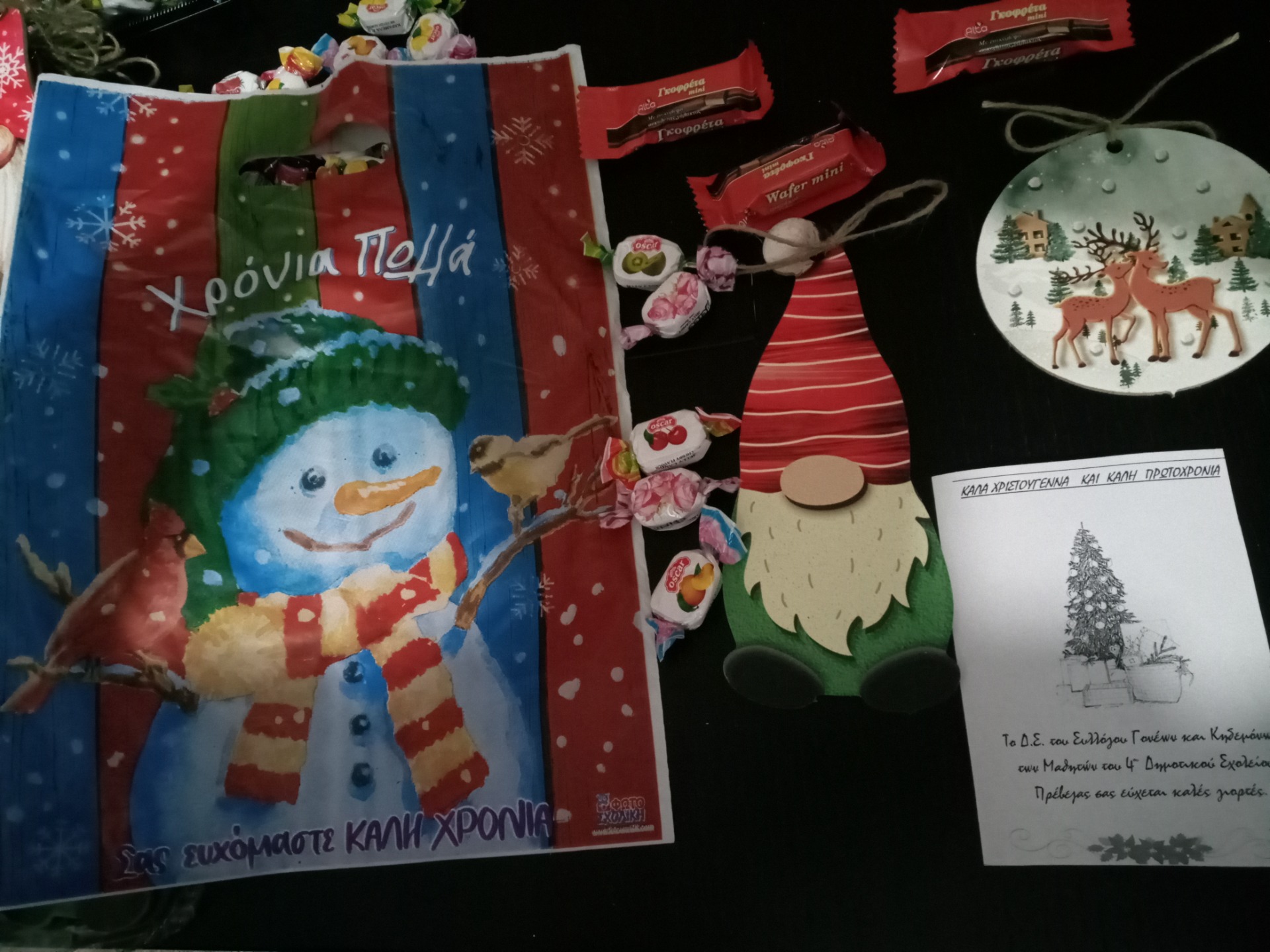 Ο Σύλλογος Γονέων και Κηδεμόνων του 4ου Δημοτικού Σχολείου για άλλη μια χρονιά μοίρασε χαρά δίνοντας σε όλους τους μικρούς μαθητές και μαθήτριες του σχολείου μας, ένα μικρό δωράκι μαζί με τις ευχές του Συλλόγου για να περάσουν τις γιορτές με υγεία, αγάπη και ξεγνοιασιά.
